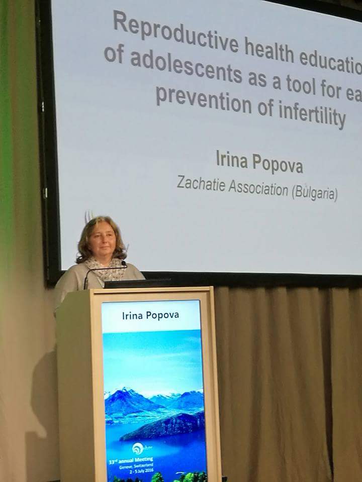 Тази година тема на пациентската сесия беше приносът на пациентските организации за иницииране на промени в нормативната уредба на дейностите по асистирана репродукция. Нашата представителка беше поканен лектор в сесията и представи образователната кампания на сдружение "Зачатие" за тийнейджъри от 13 до 19 години, провеждана от 2011 година досега под мотото "Бъди в час по репродуктивно здраве!". Презентацията предизвика голям интерес сред аудиторията и получи множество въпроси и похвали за активната гражданска позиция на сдружението.